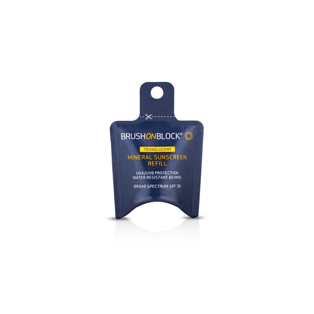 - Brush On Block Translucent Sunscreen refills are now even more eco-friendly! This handy little pouch pours into the cartridge on your original brush, meaning one less piece of single-use plastic in a landfill. Even better, you can add the empty packet to your co-mingled recycling. .Safe for sensitive skin and "eco" friendly.